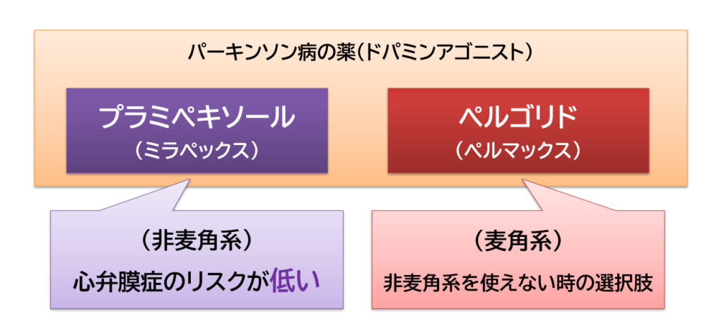 『ミラペックス』と『ペルマックス』、同じパーキンソン病治療薬の違いは?~麦角系・非麦角系の差と第一選…