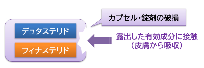 しかし、「デュタステリド」や「フィナステリド」は皮膚から吸収される性質がある4,5)ため、薬を服用しなくても、薬に触れるだけでもその影響を受けることがあります。