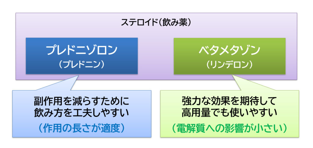 『プレドニン』と『リンデロン』、同じステロイドの飲み薬の違いは?~作用時間と鉱質コルチコイド作用によ…